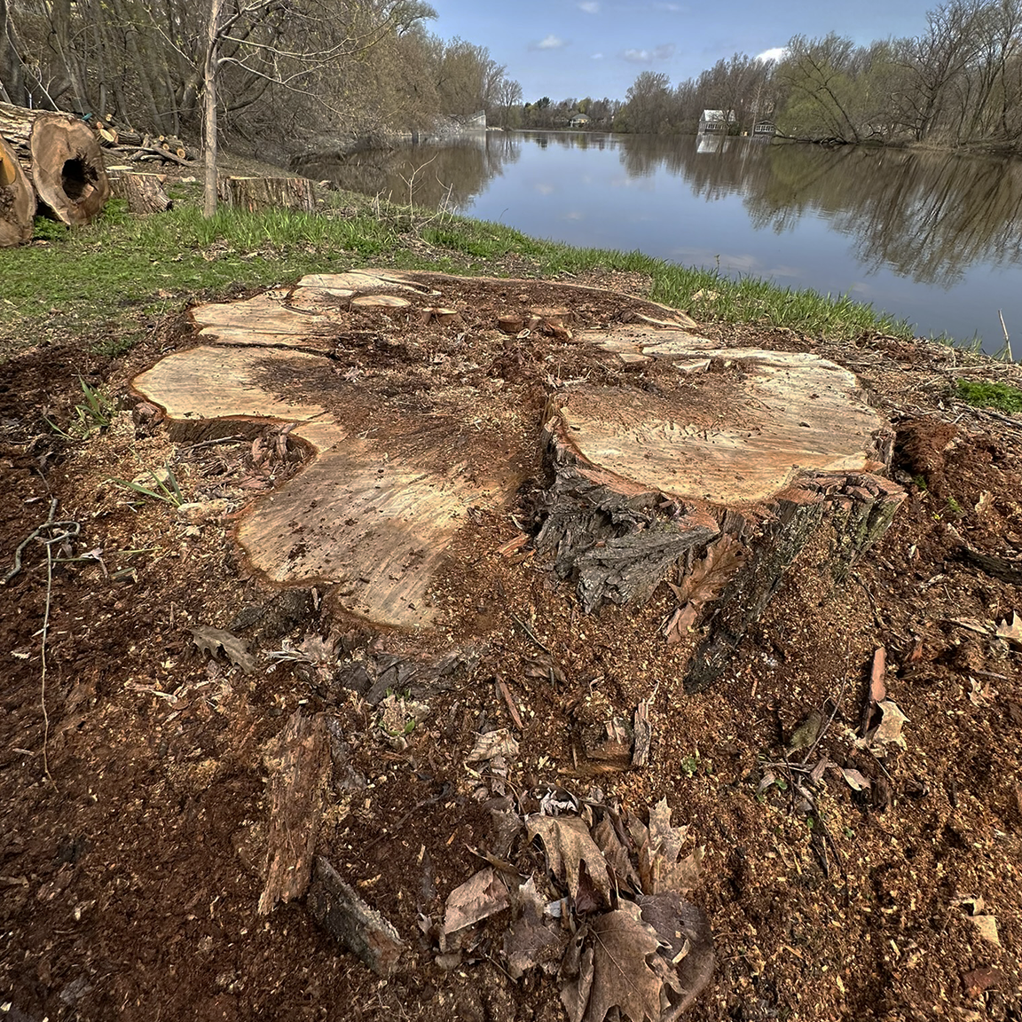 L'égalisation est l'étape la plus importante pour la satisfaction d'un job bien fait. Le but est de rendre le terrain comme s'il n'y avait jamais eu de souche sur celui-ci.